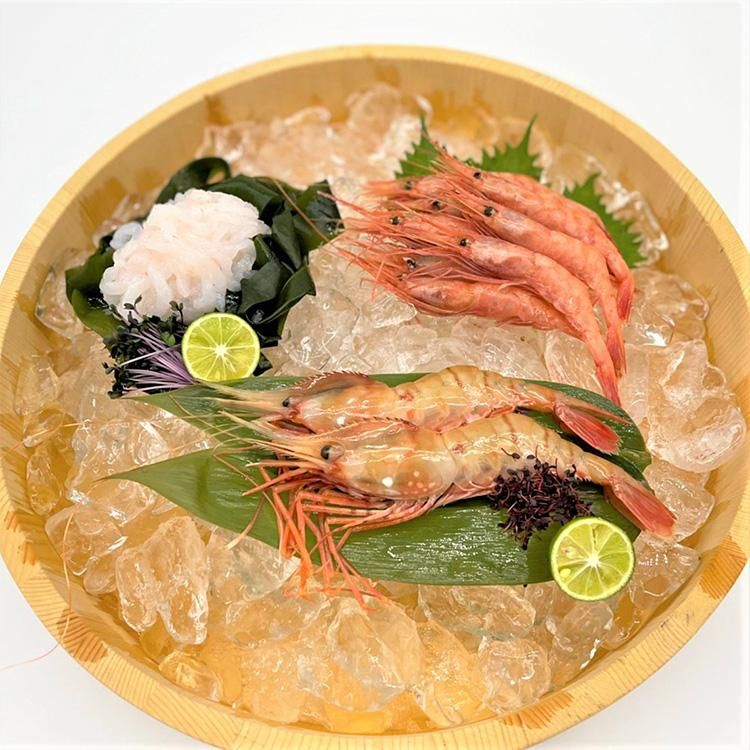 お刺身として食べられる旨味と甘味が一番ベストな状態のあまえびを凍結しました。また、そのまま焼いて頭から尾の先までまるごと食べることも出来ます。お雑煮の具材など、食材としてアレンジ料理としてもお勧めの逸品です。